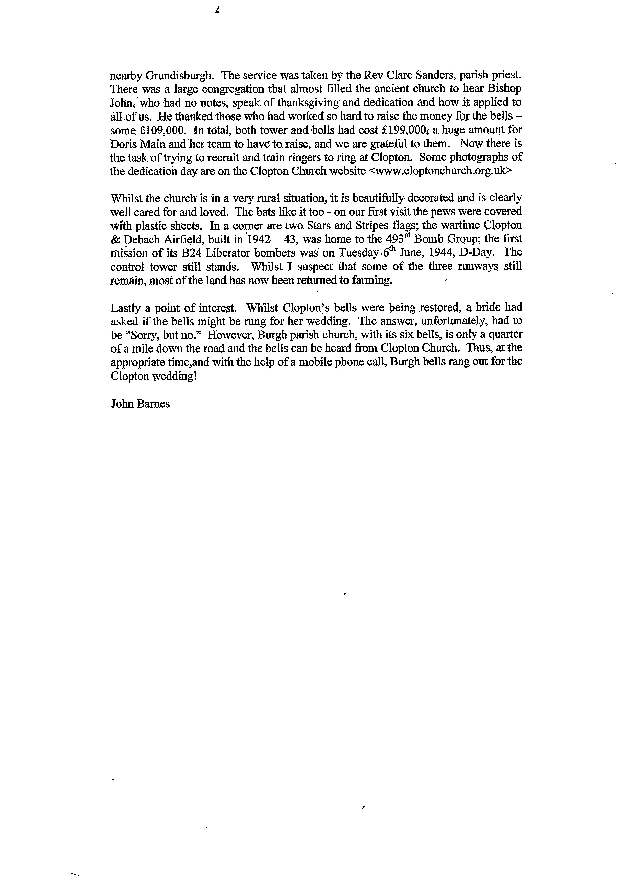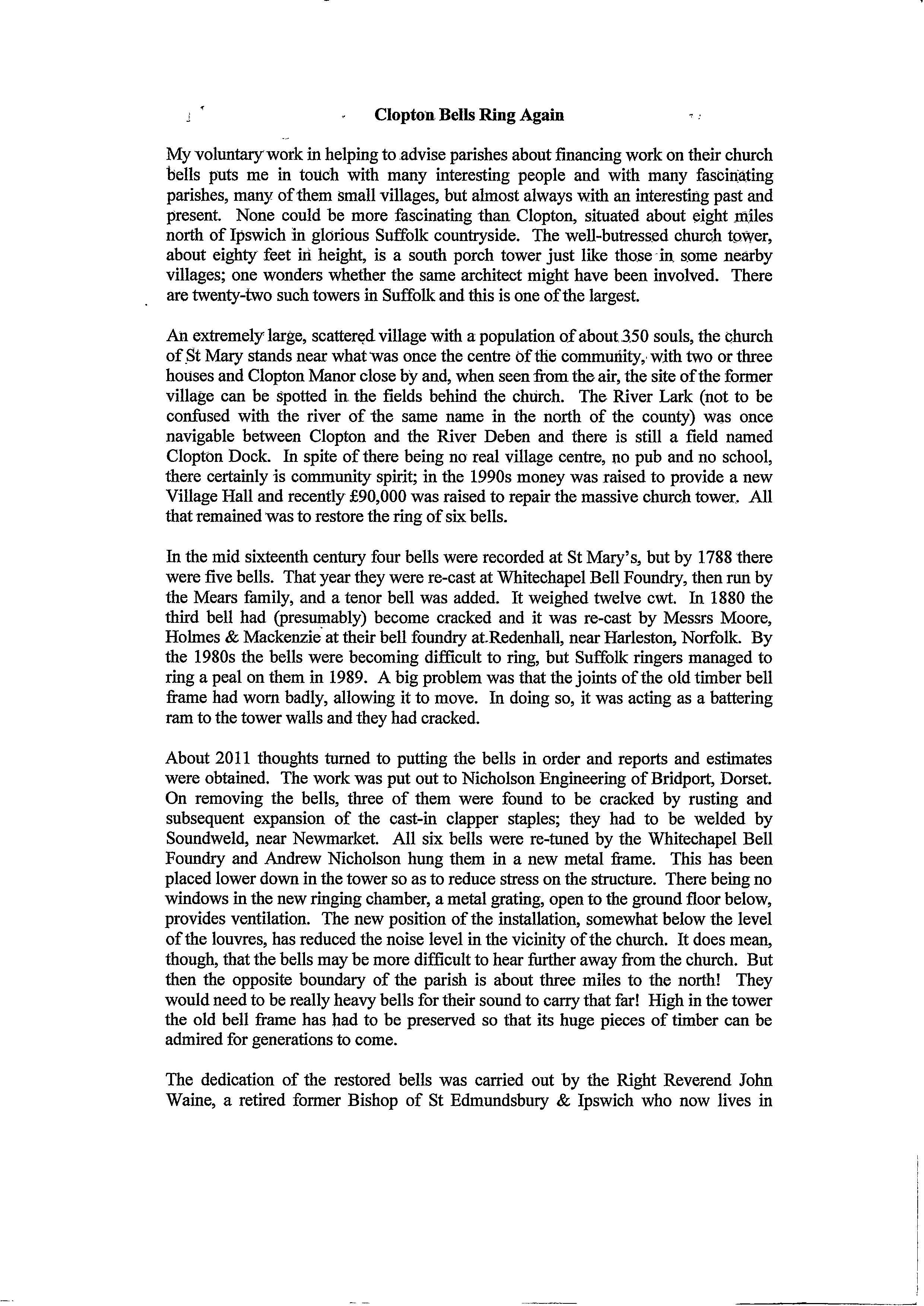 Clopton Village, Heritage & History » Clopton Church History » Church Bells