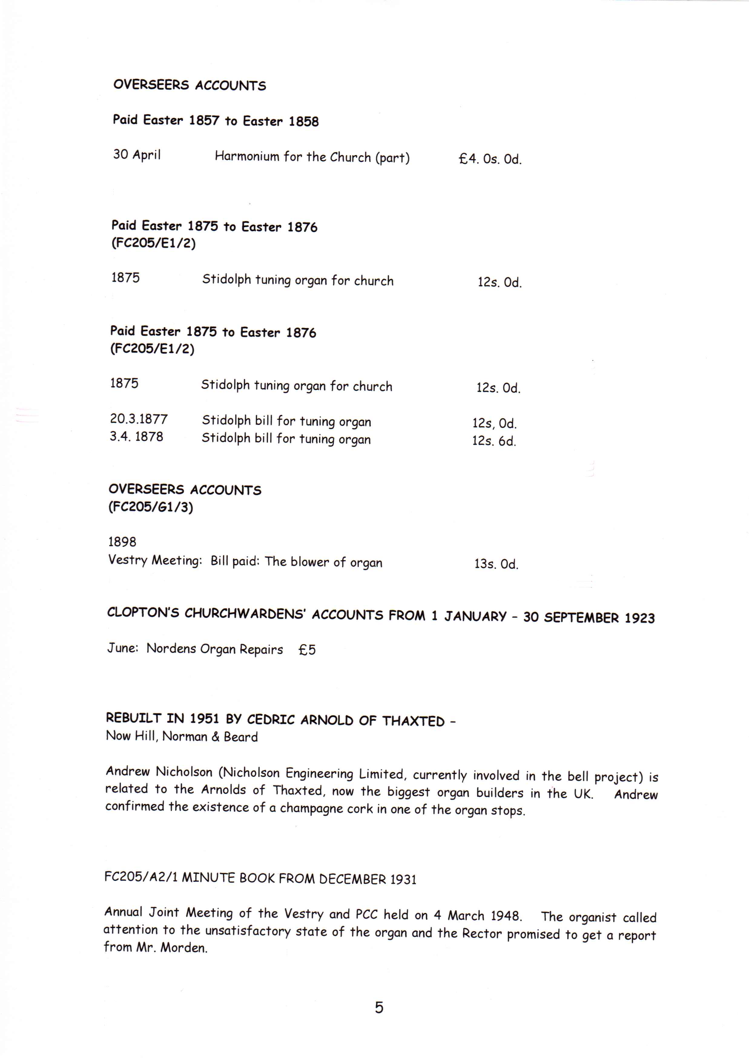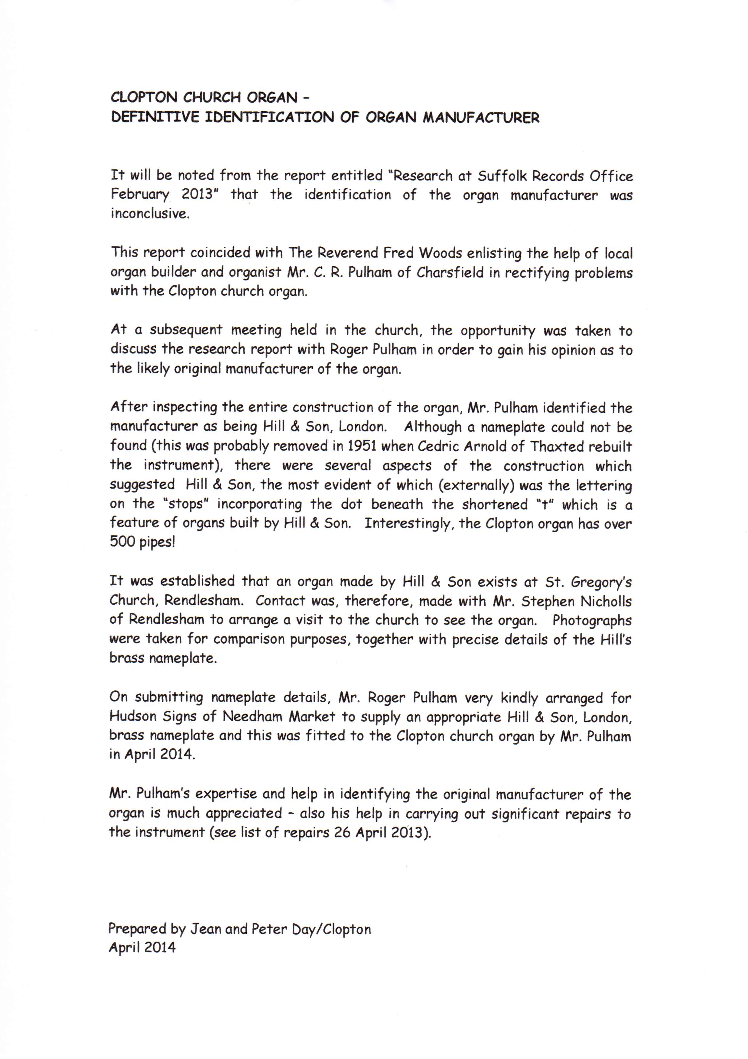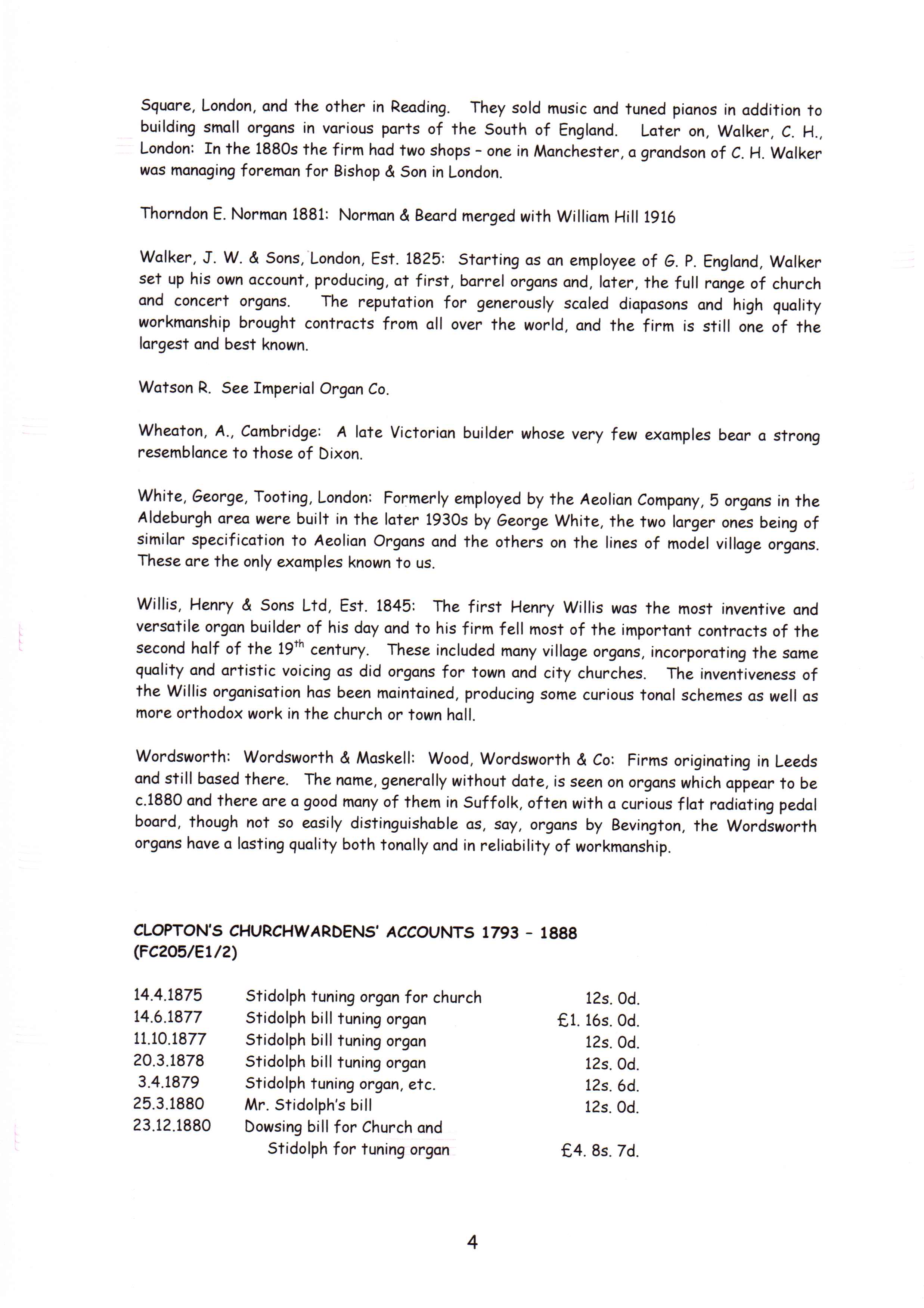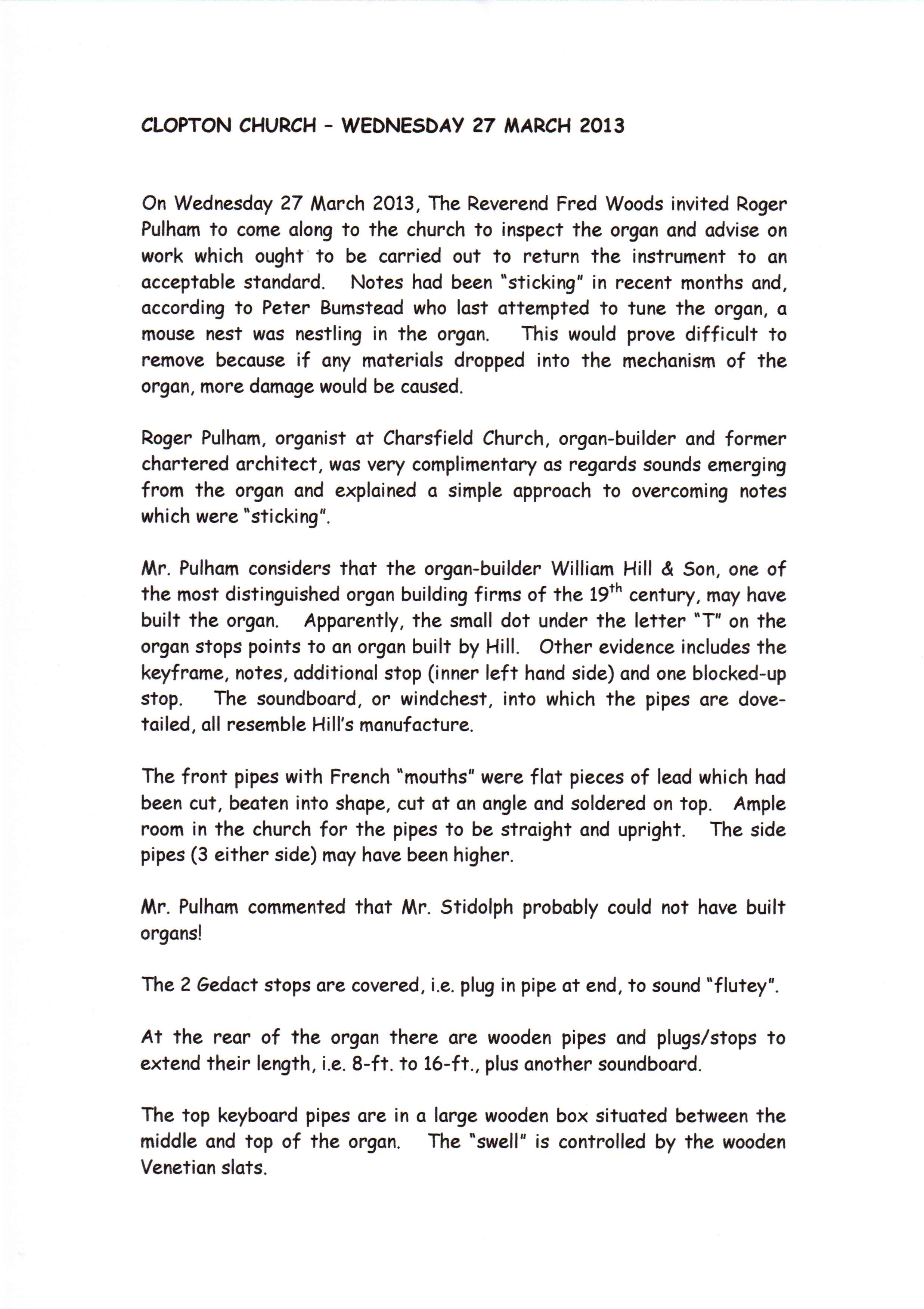 Clopton Village, Heritage & History » Clopton Church History » Church organ
