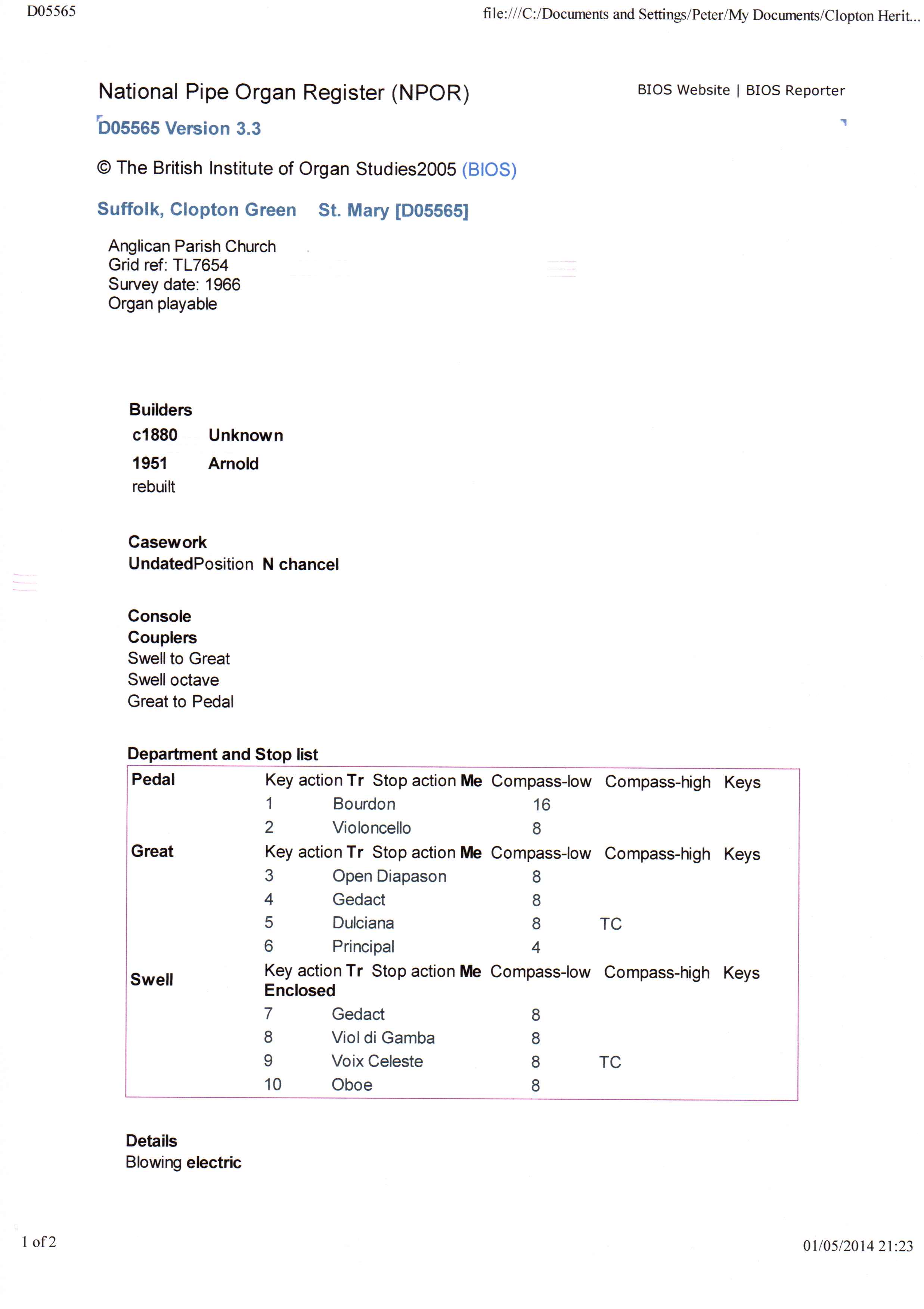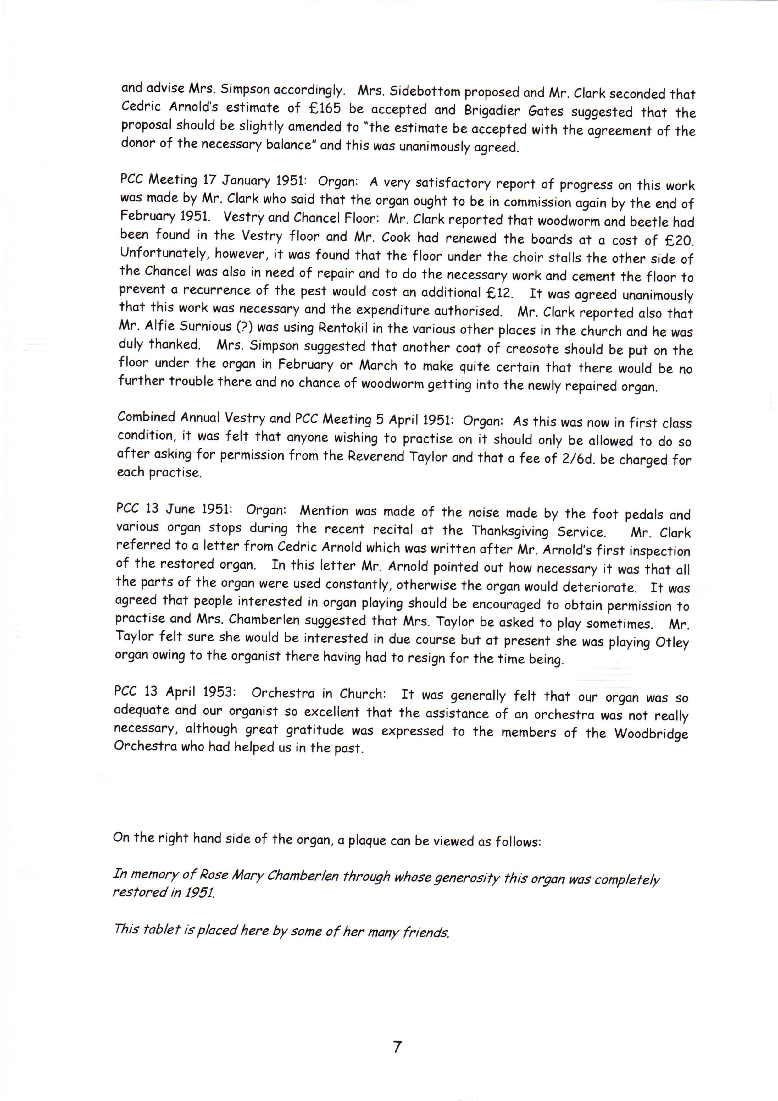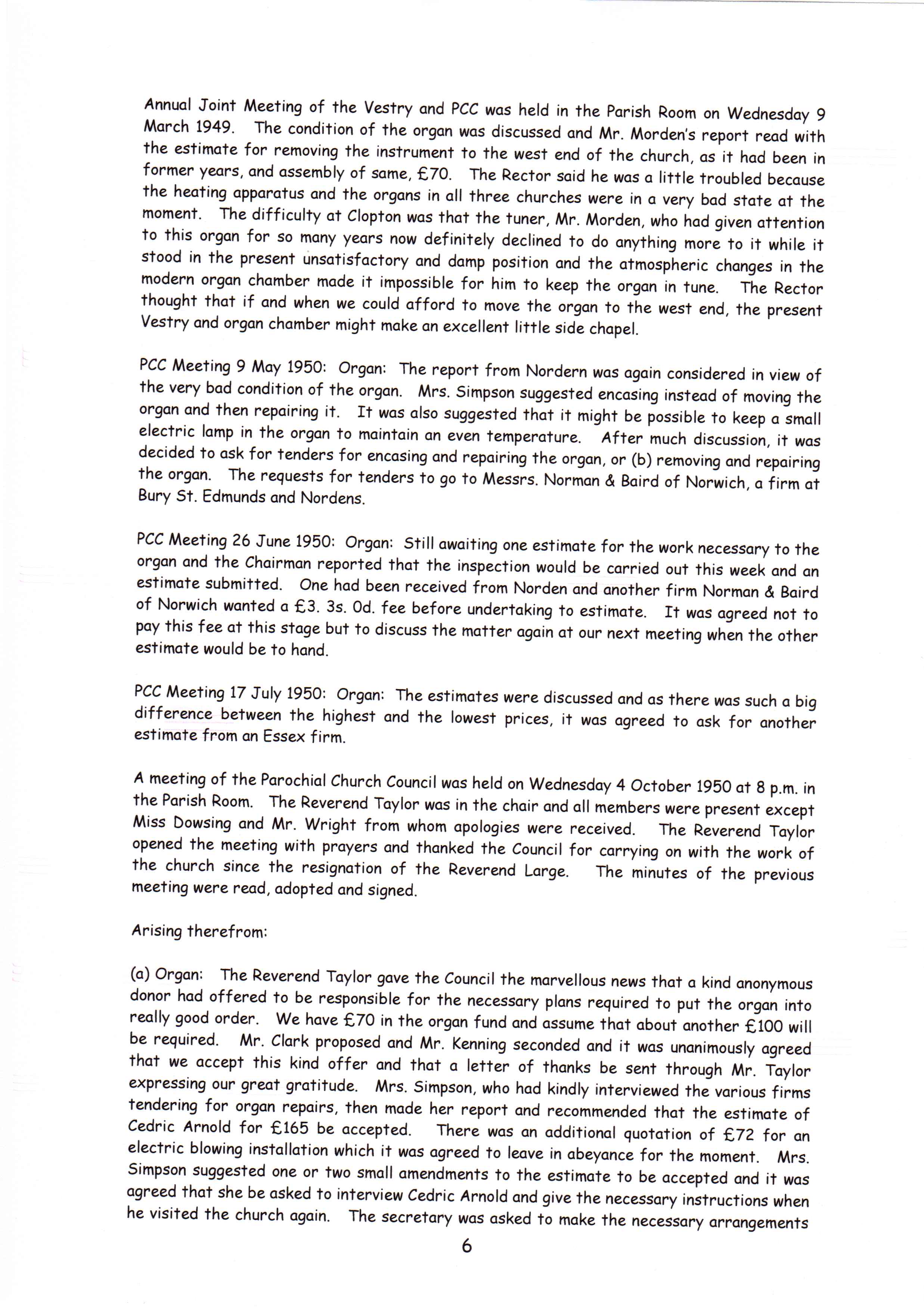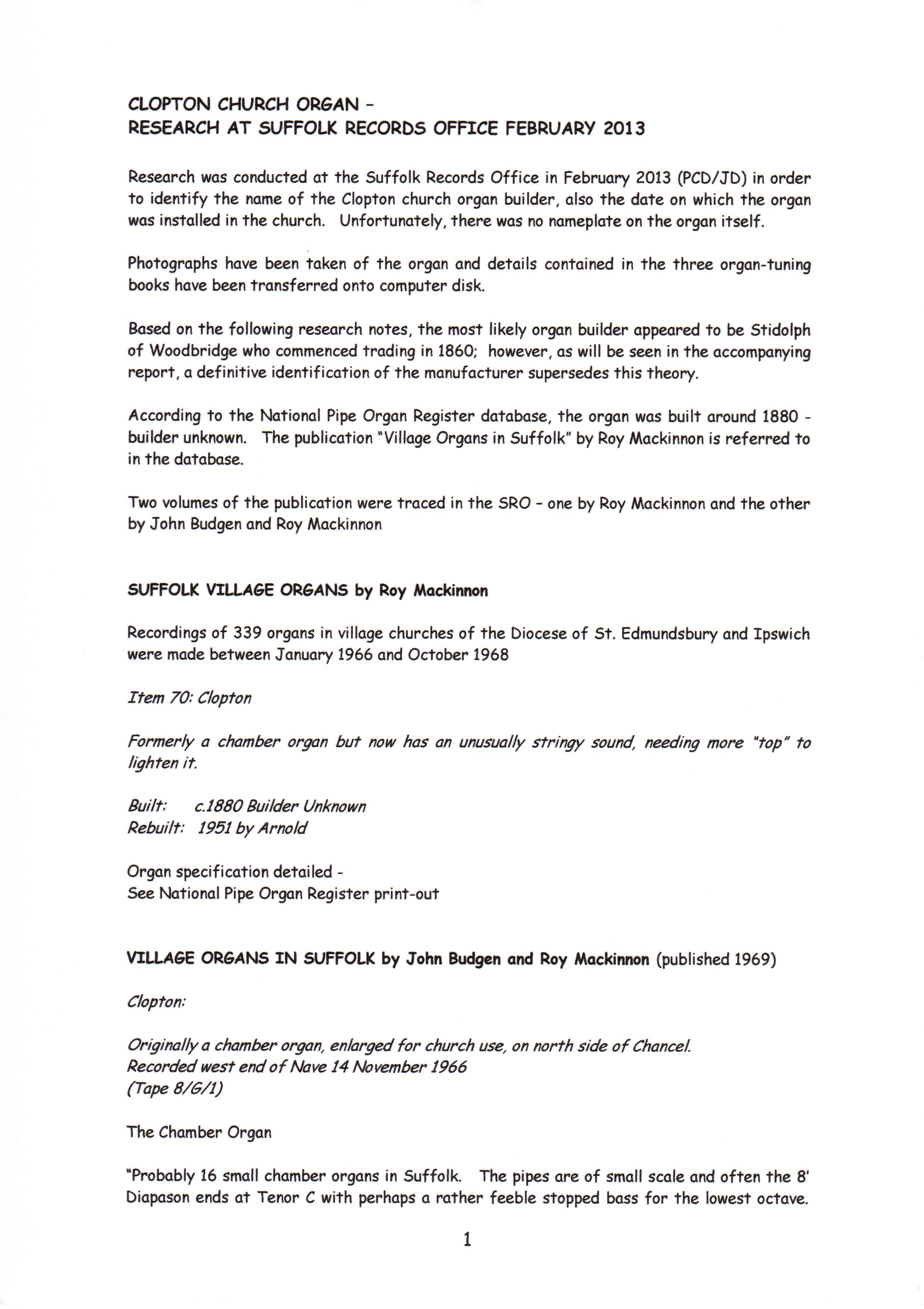 Clopton Village, Heritage & History » Clopton Church History » Church organ