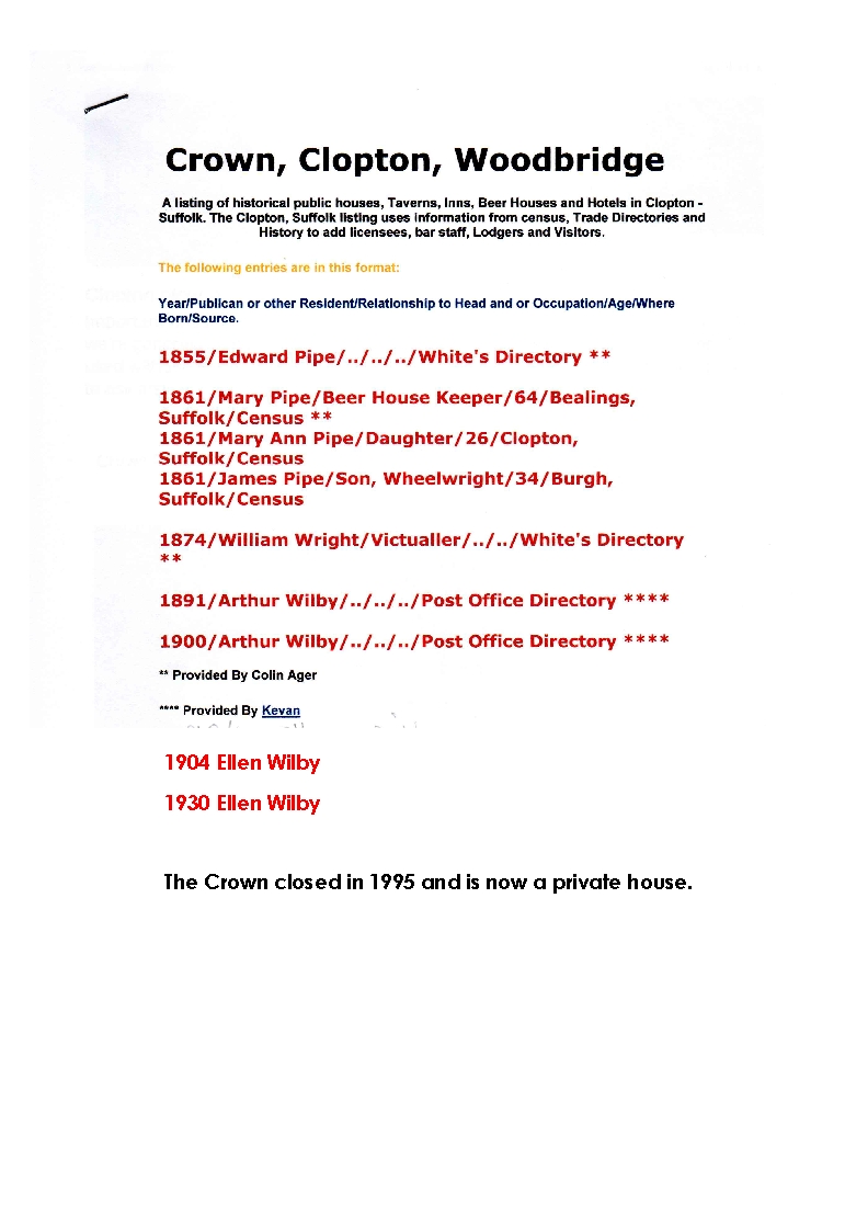 Clopton Village, Heritage & History » The Crown Clopton